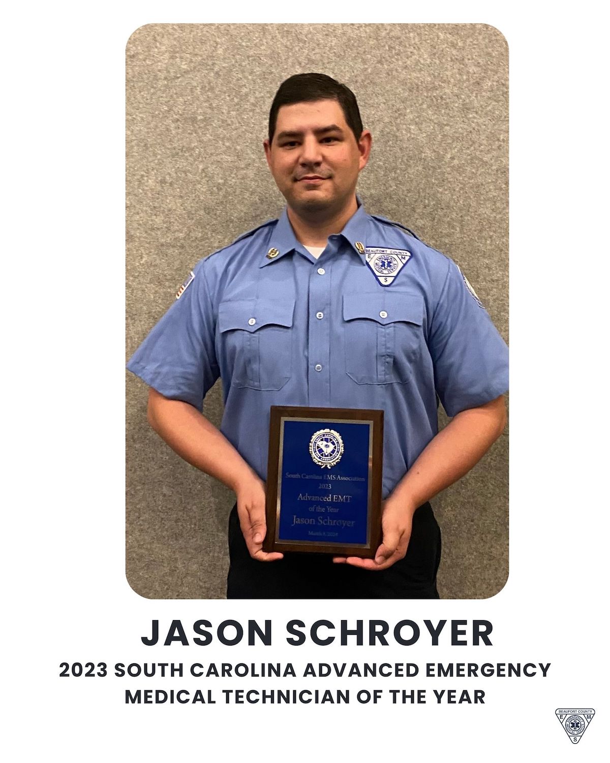 Eddie “Catlin” Schroyer was named 2023 South Carolina Emergency Medical Technician of the Year.