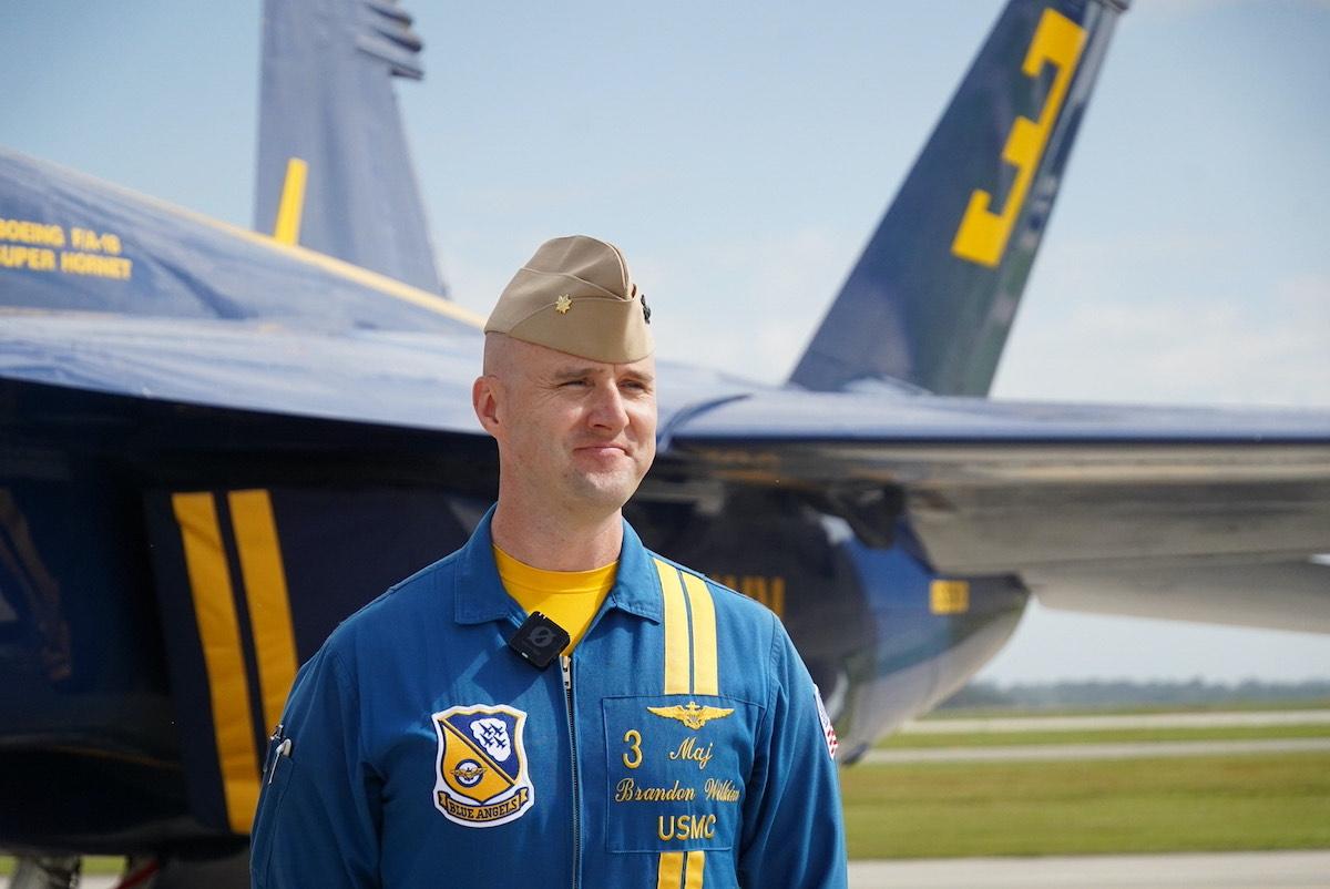 USMC Maj. Brandon Wilkins, who flies Blue Angel No. 3 F/A-18, was born and raised in Beaufort and currently lives here with his family.