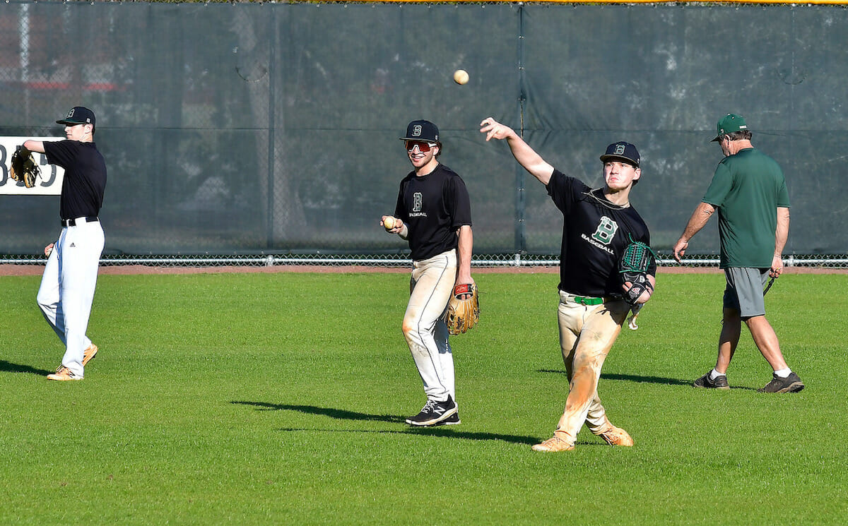 The Boys of Spring are at it at Beaufort High School, as seen here Wednesday afternoon, Feb. 23, getting warmed up in the outfield.