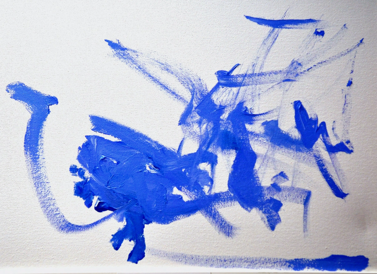 “He wanted a brush too so I gave his some paint and brush and he created ‘“’Blue Dinosaur.’ He hasn’t stopped since.”