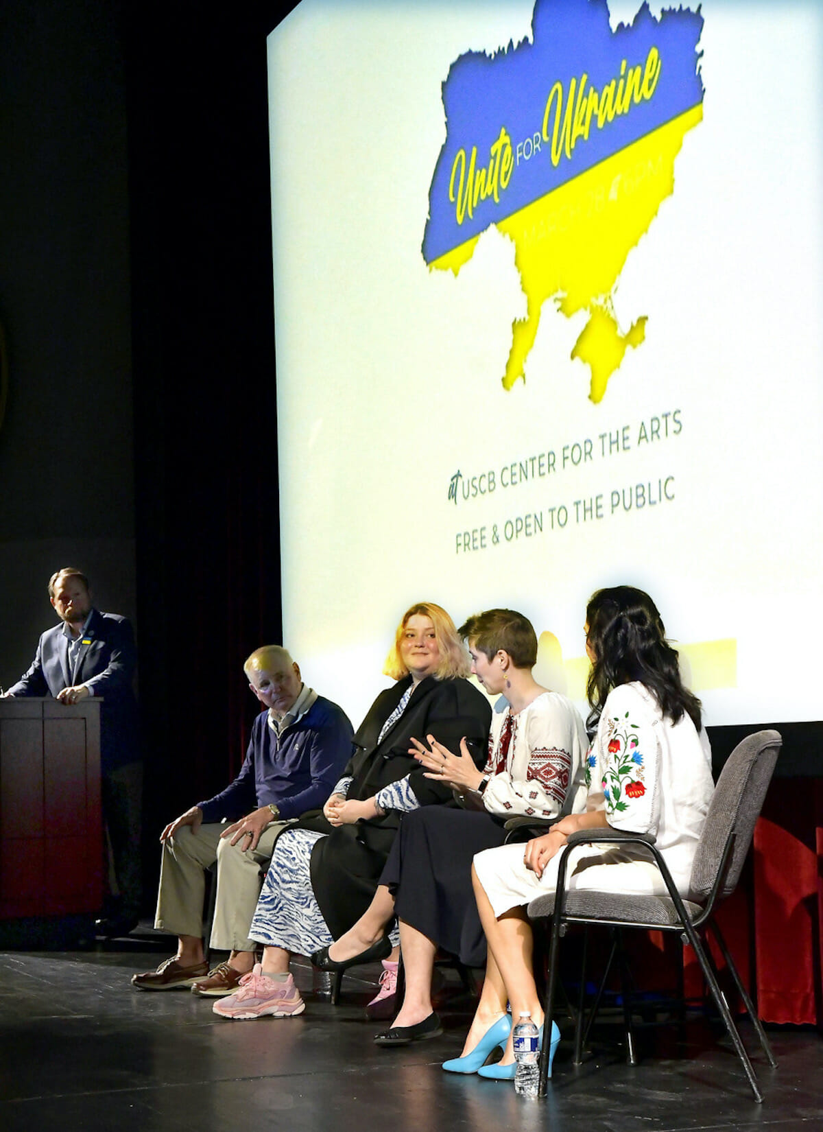 Speakers with a broad range of experiences related to Ukraine took the stage at the USC Beaufort (USCB) Center for the Arts on Monday night to discuss their perspectives on the war currently being waged there.