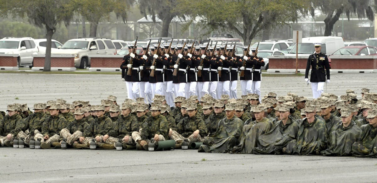DSC6217 April 8, 2015 DSC6217 The Silent Drill Platoon comander Capt. Michael Bell, far right makes its way to the center of the parade deck for a rainy performance on Monday at Marine Corps Recurit Depot Parris Island. Share this Facebook Messenger Twitter Pinterest Whatsapp Email newsbyte Leave a ReplyYour email address will not be published. Δ