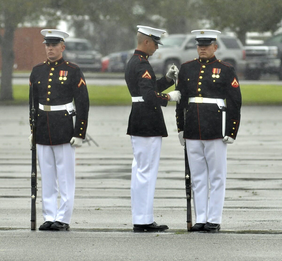 DSC6295 April 8, 2015 DSC6295 Sometimes things just wrong, event for the renowned Silent Drill Platoon. Here, the rifle inspector re-attaches a bayonet that came loose during Monday’s Battle Color performance at Marine Corps Recurit Depot. Share this Facebook Messenger Twitter Pinterest Whatsapp Email newsbyte Leave a ReplyYour email address will not be published. Δ