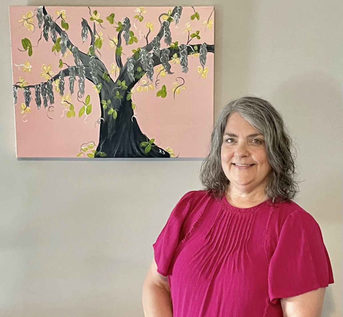 Schubert has been painting with acrylics for more than 30 years and began working on canvas during the COVID epidemic. Her interest in art began in childhood and continued during school at Beaufort High School, where she won the Ceramics Award and the Arts in the Park Award for a pencil drawing.