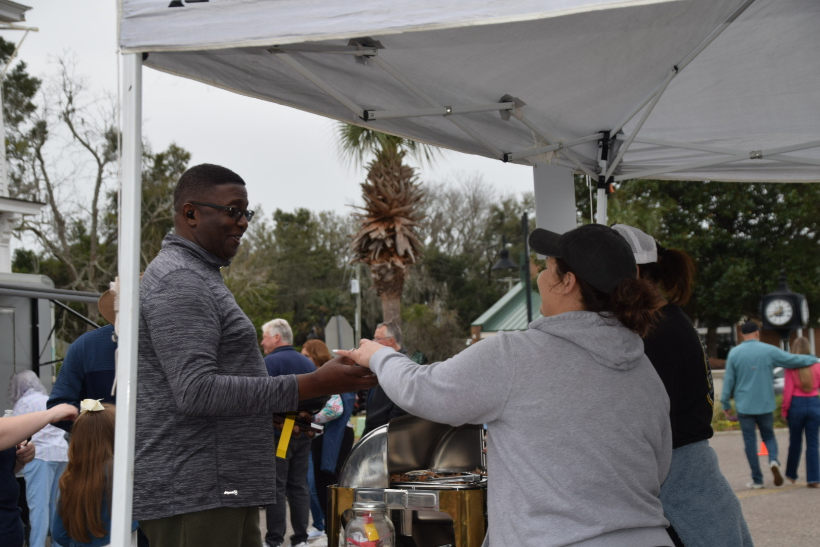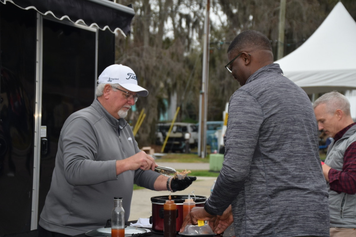 Port Royal Councilman Darryl Owens revives a barbecue sample during the Bands, Brews, and BBQ tasting in Port Royal on Saturday, Feb. 15, 2025. The event was coordinated by Zonta Club of Beaufort. Amber Hewitt/The Island News