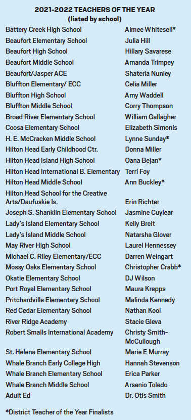 Battery Creek High School biology teacher Aimee Whitesell was named Beaufort County’s 2021-2022 District Teacher of the Year on Friday, Oct. 1 at a breakfast honoring teachers of the year from all of the district’s schools.
