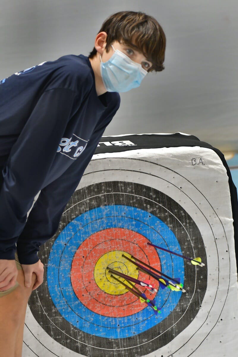 Each archer in a tournament will launch five arrows during an “end” at distances of 10 and 15 meters. Three ends are shot at each distance for an aggregate score. Bull’s-eyes are used as tiebreakers as top shooters Patrick Good and Nathaniel Nash found out Friday.