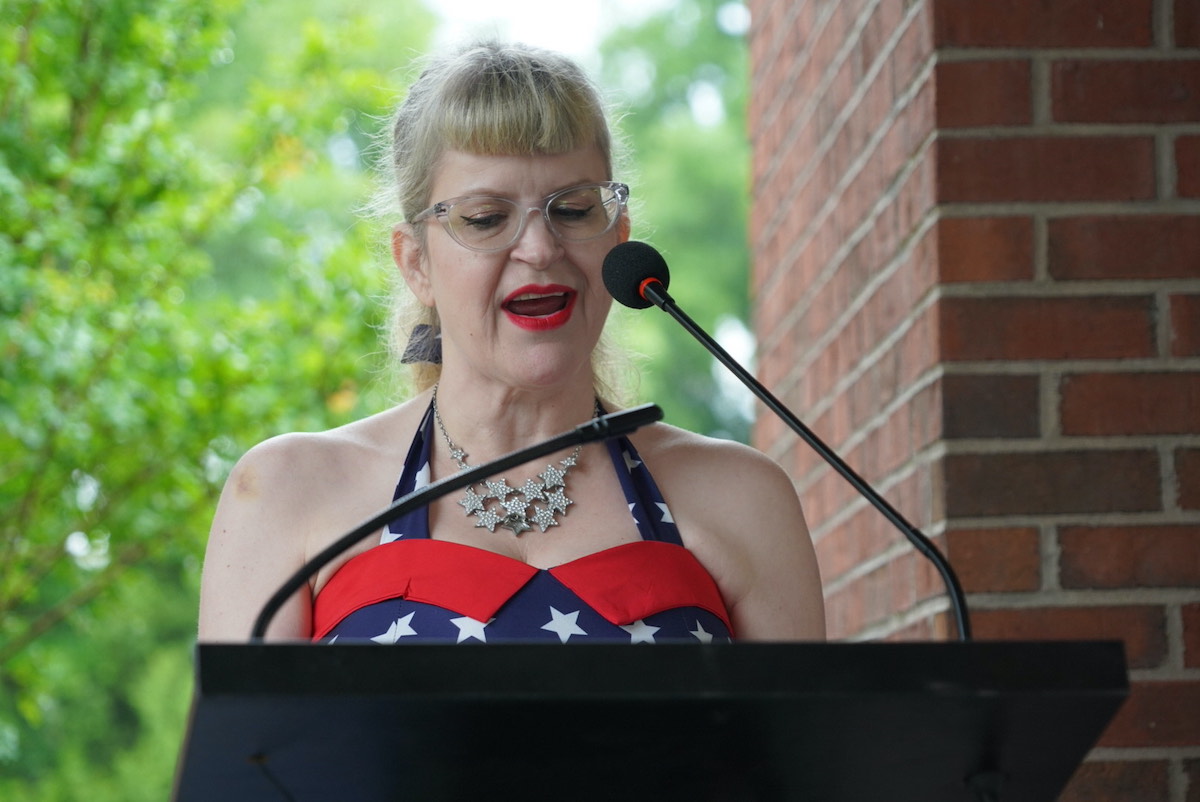 Alison Chambers sings “Amazing Grace” during the Committal Service honoring two unclaimes veterans — Navy Gunners Mate Petty Officer 1st Class Lewis Melvin Coy III and Air Force Senior Airman Benjamin Harrison Hyder III – at Beaufort National Cemetery on Friday, May 10, 2024. Amber Hewitt/The Island News