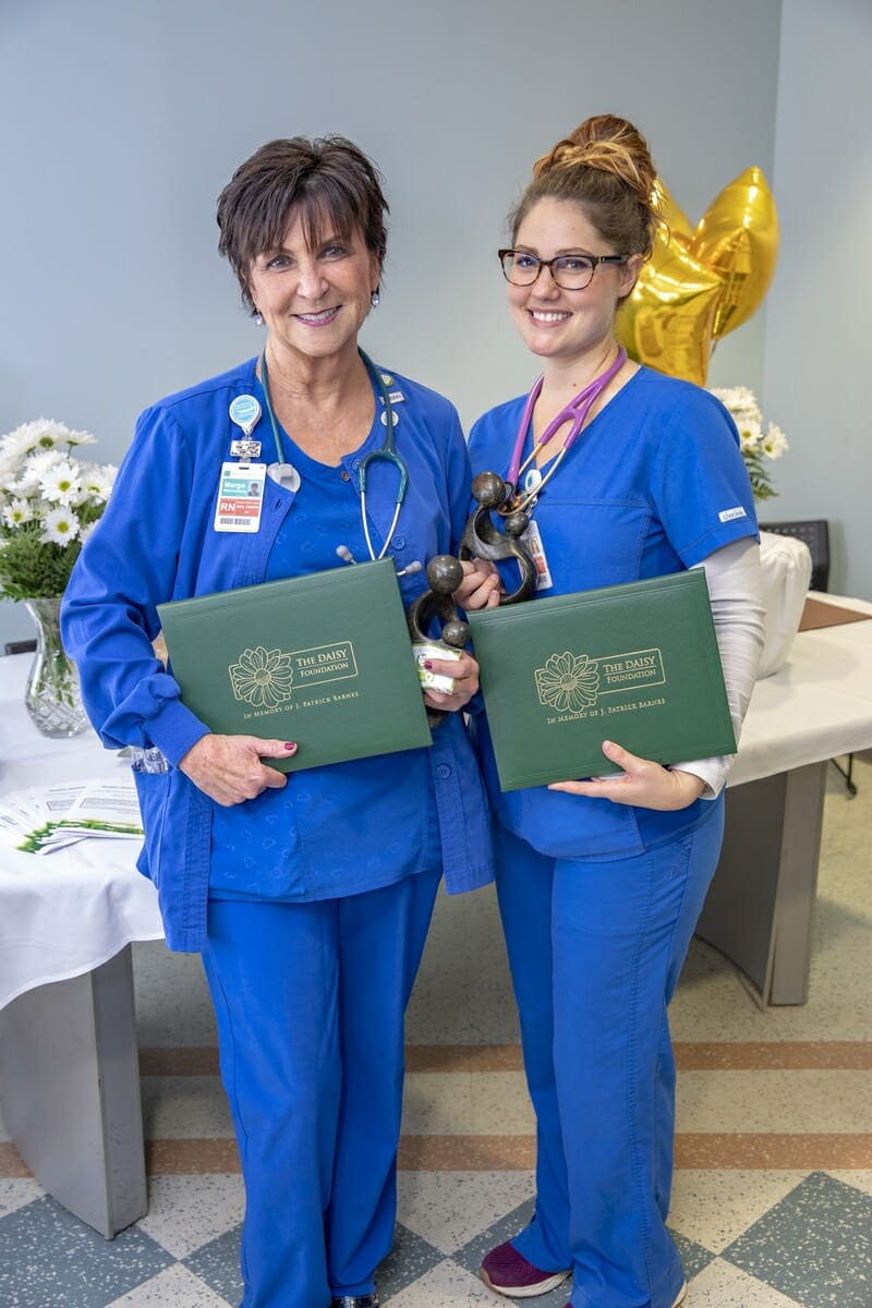 Last week, hospital administrators and coworkers surprised nurses Margo Wehrenberg and Nicole Viskovich with the DAISY Award for Extraordinary Nurses, a national tribute reserved for RNs who go the extra mile to care for patients and their families.