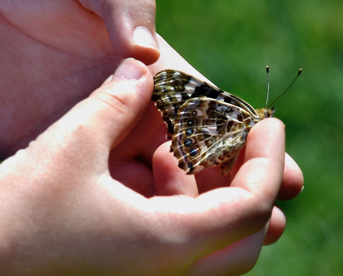 A Painted Lady butterfly needed to warm up a bit before flying off during Friends of Caroline’s Release and Remember butterfly release Saturday, April 29, at Henry C. Chambers Waterfront Park. Bob Sofaly/The Island News