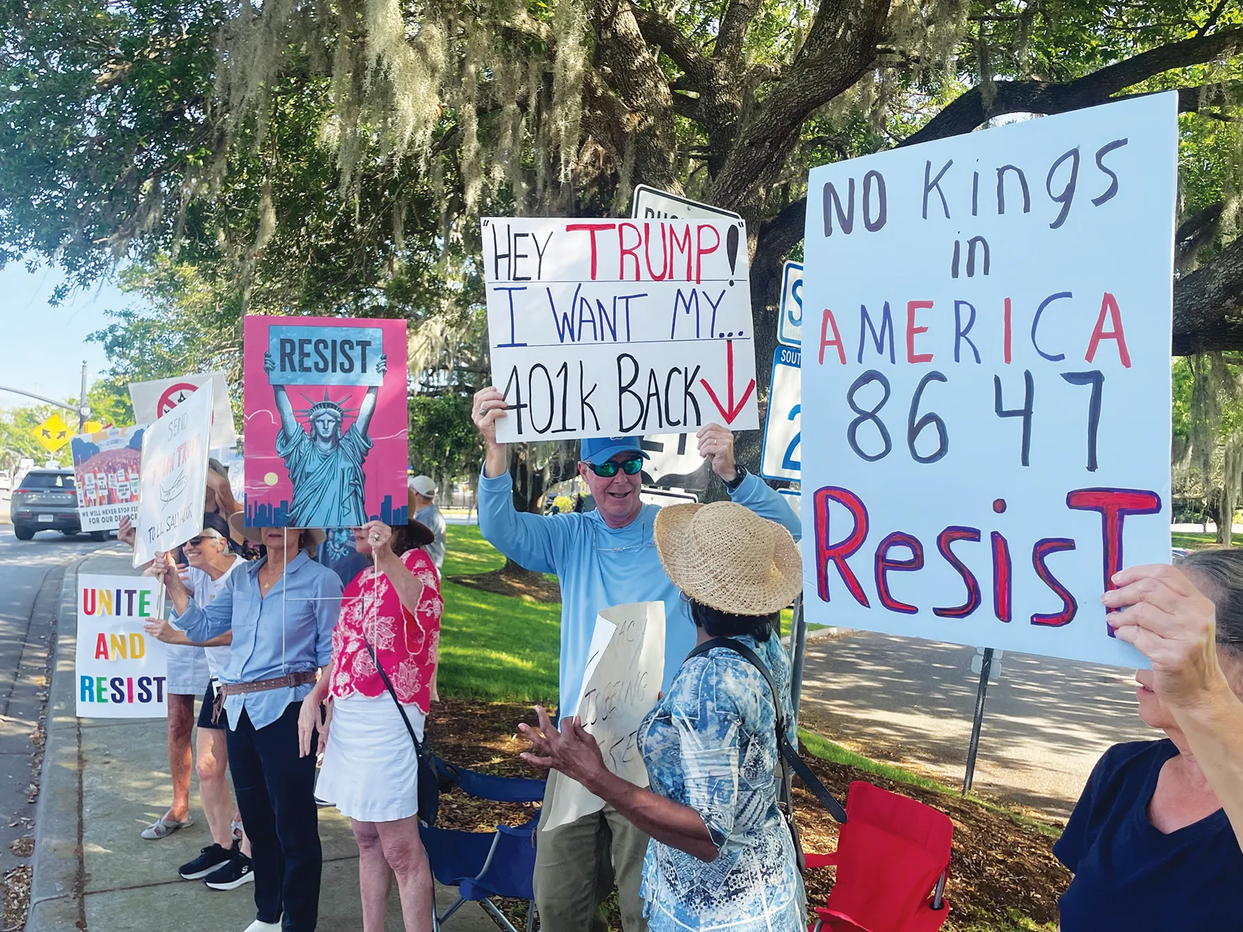 Protesters line Boundary Street on Saturday, April 19, 2025. The protesters were among those who came out to join a national protest organized by 50 50 1 to speak out against policies that are being enacted by President Donald Trump’s administration. Jeff Evans/The Island News