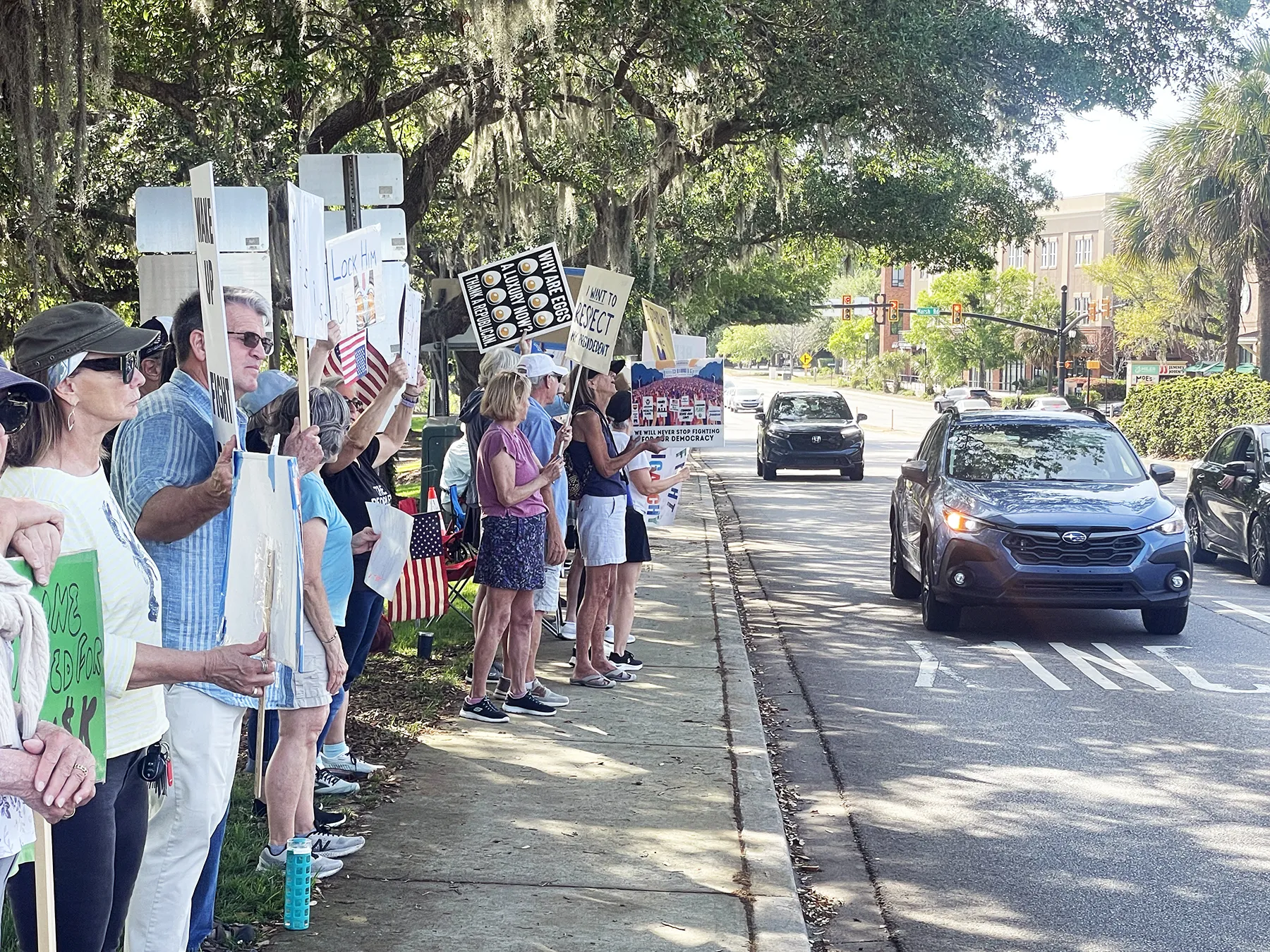The number was smaller than the “Hands Off” National protest that Beaufort residents participated in earlier in the month – which drew around 800 protesters – but Barb Nash, president of the Northern Beaufort County Democratic Club said she believes it is due to the timing.