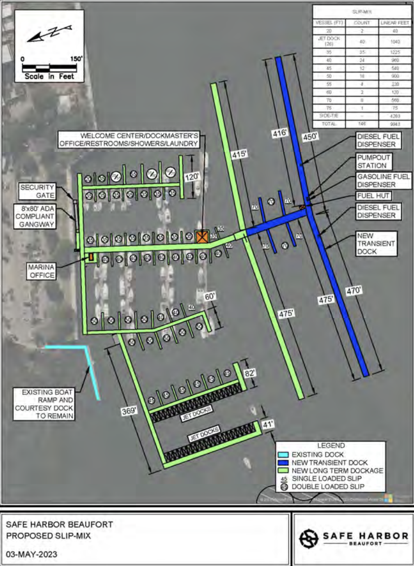 Safe Harbor Marinas has already invested $840,000 in the existing facilities and they want to fix, replace and expand the marina, per their understanding of the lease they signed with the City of Beaufort in 2019, to try and attract more people to come and utilize the Safe Harbor facility, bringing them into the downtown area to shop in the stores and eat in the restaurants.
