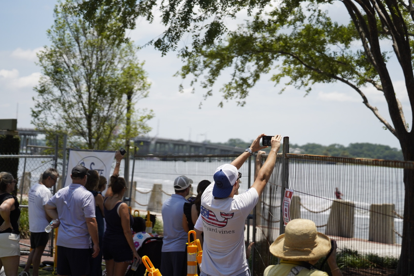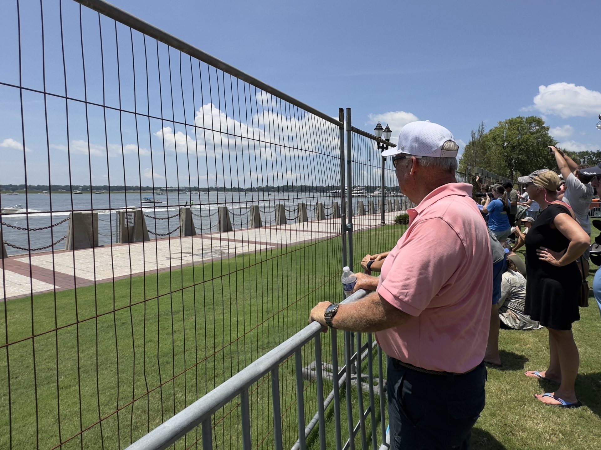 Attendees watch the 69th Annual Beaufort Water Festival Ski Show on Sunday, July 13, 2025, from behind the fencing because of the promenade area of Henry C. Chambers Waterfront Park being closed due to safety concerns regarding structural issues found underneath. Amber Hewitt/The Island News