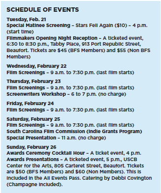 Tickets are available for the 17th annual Beaufort International Film Festival hosted by the Beaufort Film Society (BFS). The event runs from February 21 through February 26, with all film screenings held at the USC Beaufort Center for the Arts at 805 Carteret Street in Beaufort.