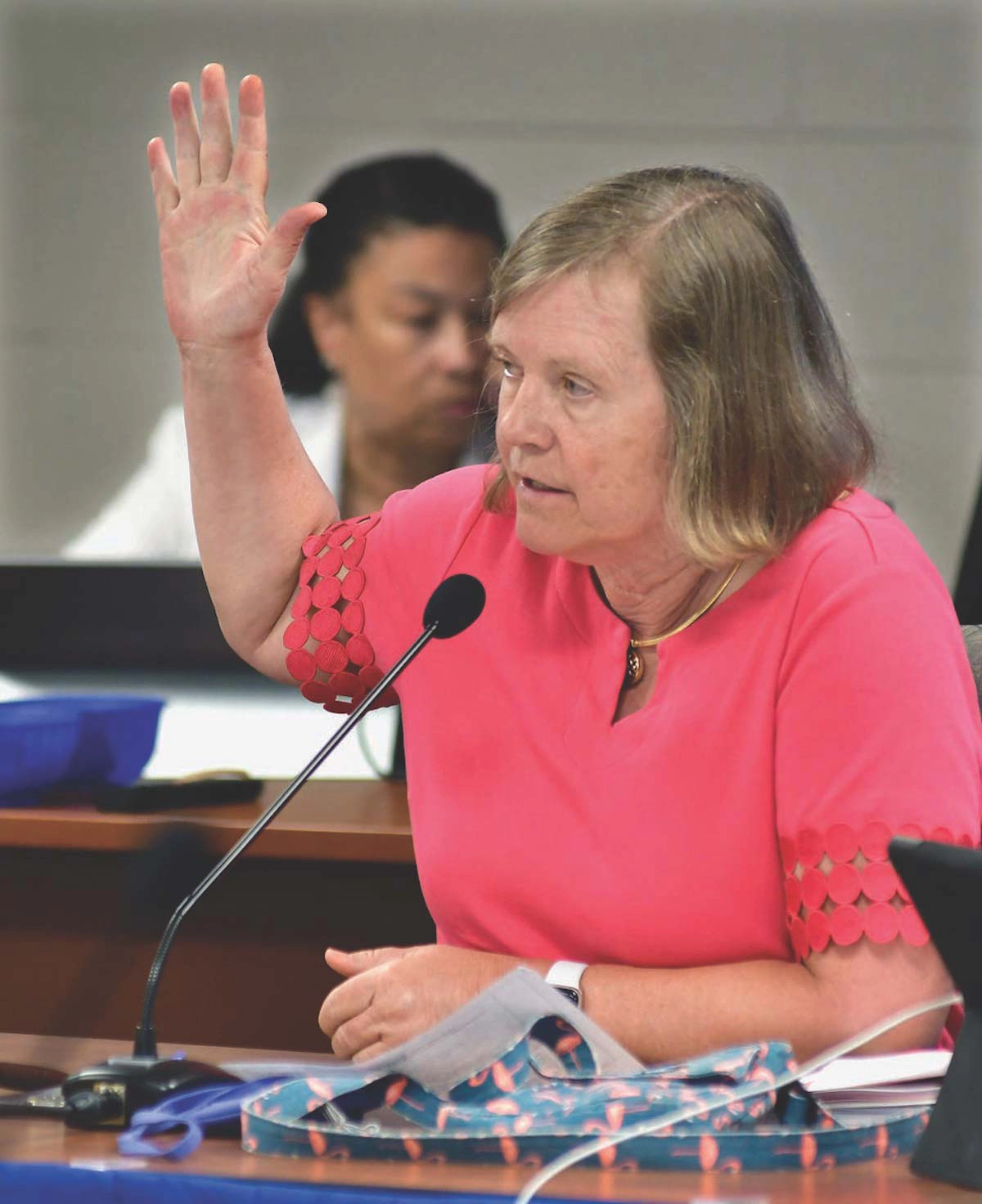 “I move the Board find that during the public comment session of the Board meeting on June 27, 2023, a community member violated Board Governance Policy GC-2-23 and the expectation of the Board concerning public comment at Board meetings by throwing several objects at the Board members and hitting a Board member with one of the objects causing a material disruption of the Board meeting. I further move the Board issue a written directive to this community member to not further violate the rues for speaking at public comment sessions by taking physically aggressive actions during the public comment at Board meetings, such as throwing objects at or in the direction of Board members or attending members of the public. I so move.”