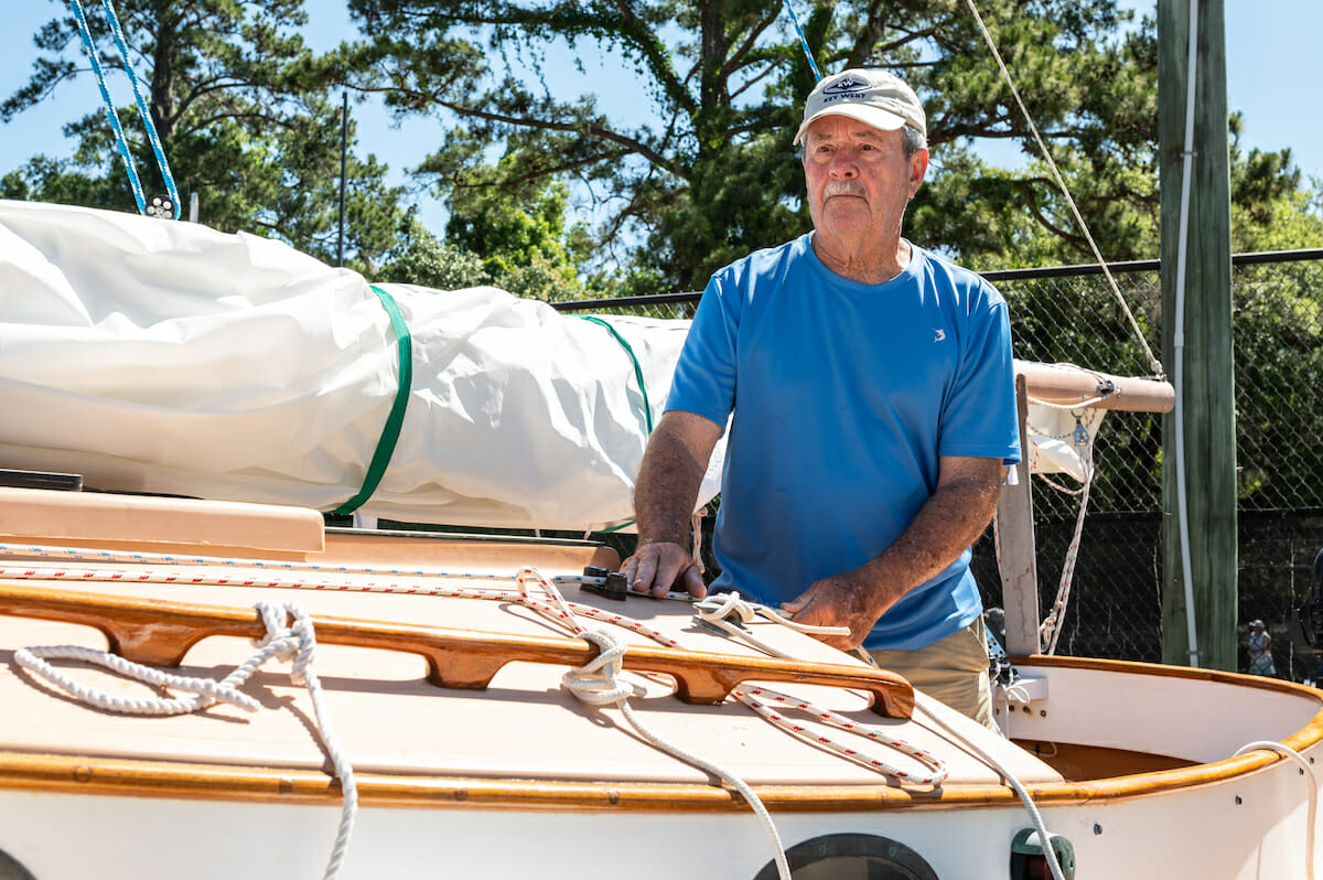 One of the best examples of a classic catboat, the Silent Maid, is in the Lowcountry to participate in the races. Captain Henry Colie spent 16 days sailing the Silent Maid down the Intracoastal Waterway from Bay Head, N.J., to participate in this week’s rally, a distance he estimated at 800 miles. It’s his second time doing so.