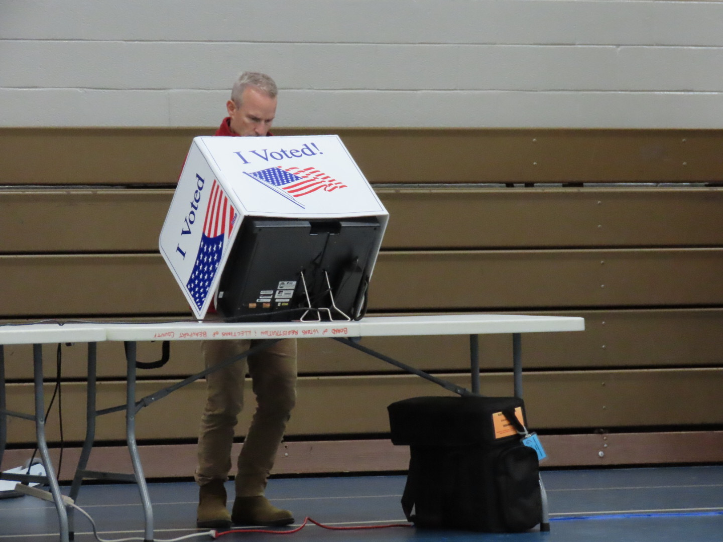 Beaufort’s Ron Timblin votes for who he hopes to be the next Mayor of the City of Beaufort on Tuesday, Dec. 12, 2023 at the Green Street Gym polling site. Amber Hewitt/The Island News