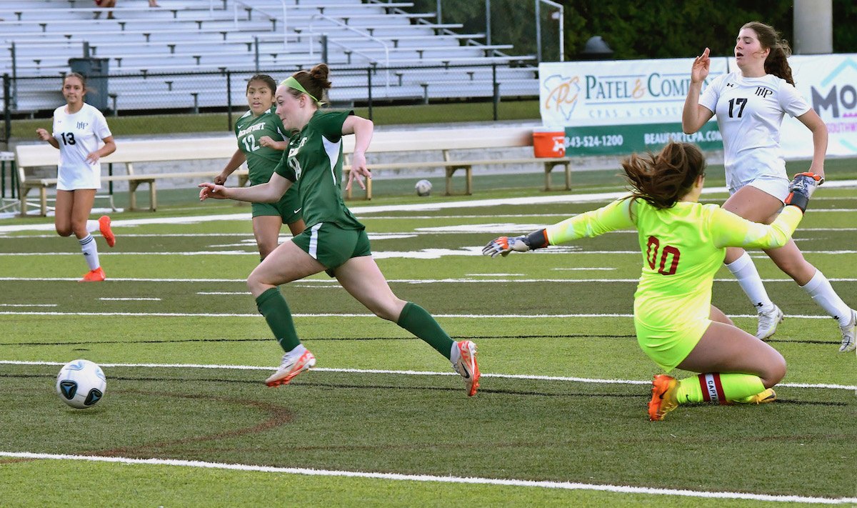 Reese Meyers added the other goal on a free kick and Gianna Pacheco dished out two assists for the Eagles, who have won four straight matches and 11 of their last 12, with the lone setback a 4-3 overtime loss to Philip Simmons. Beaufort holds the edge over the Iron Horses in aggregate score, though, by virtue of a 4-2 home win in March, so the Eagles can clinch the top seed in the playoffs with wins over Hanahan and North Charleston next week. Beaufort dominated the first meetings with the Hawks (7-0) and Cougars (16-0), so it’s almost a foregone conclusion.