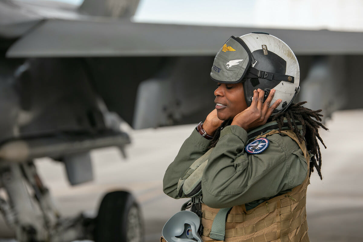 U.S. Marine Corps Capt. Ashley Ross, weapons safety officer, Marine All Weather Fighter Attack Squadron 533, Marine Air Group 31, puts on a cranial before her final flight Nov. 17, 2022, at Marine Corps Air Station Beaufort. Ross has been with her unit for more than two years and has been selected for Pilot School.