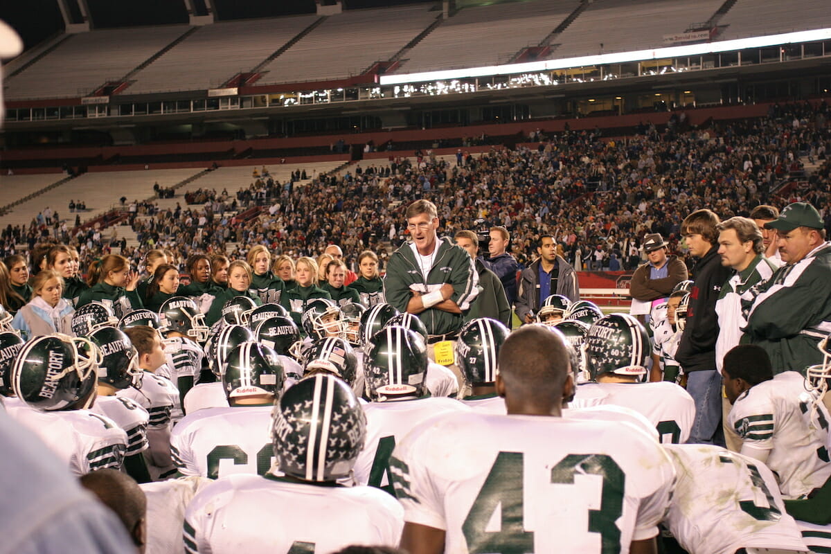 Beaufort head coach Mark Clifford talks to hit team following the Eagles’ 23-14 loss to South Pointe in the 2007 4A State Championship game at Williams-Brice Stadium in Columbia. Photo by Todd Stowe.