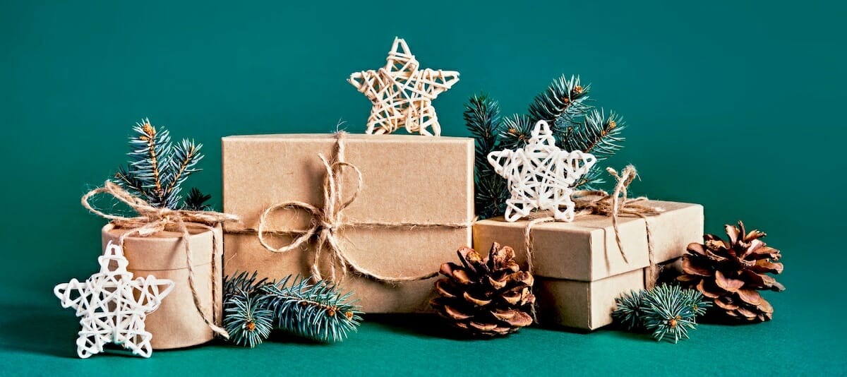 The first step is choosing environmentally responsible wrapping materials. Glossy, metallic, or embellished wrapping paper may not be easily recycled—or even recyclable at all. Instead, look for wrapping paper that is made from recycled materials and can, in turn, be recycled once more. Consider wrapping gifts in plain, brown mailing paper and decorate the outside with earth-friendly paints.