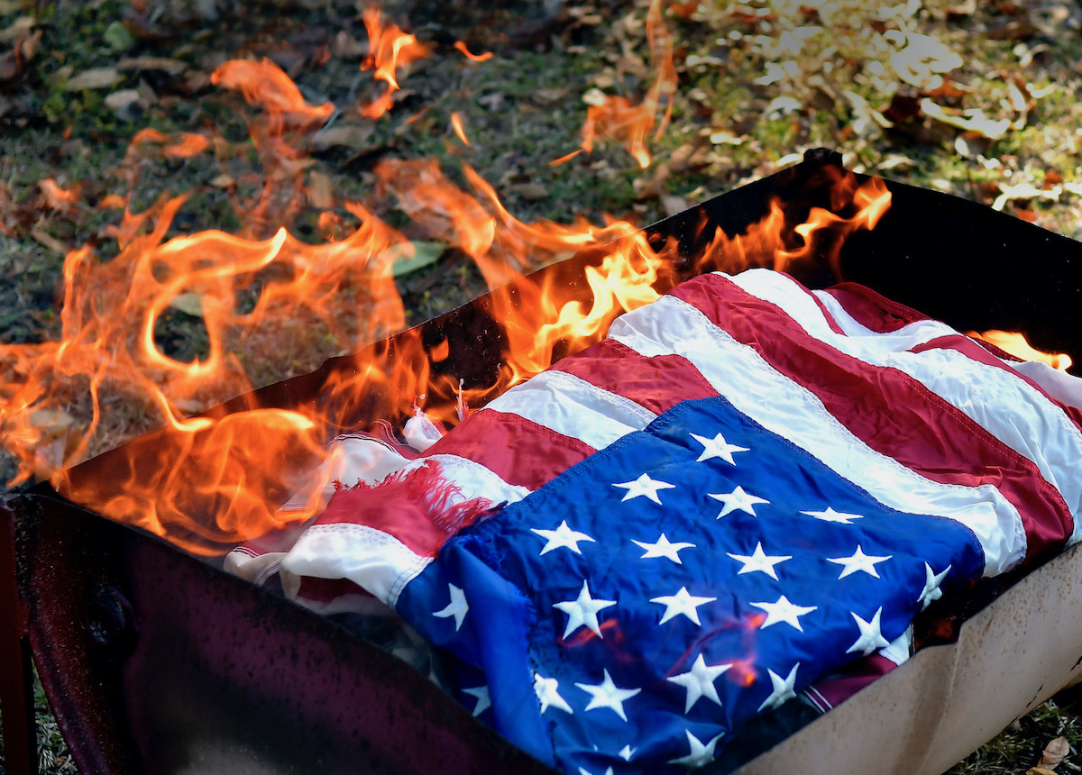 Each flag was treated with the utmost respect before finally being laid to rest on a bed of hot coals while segments of the U.S. Constitution were read aloud.