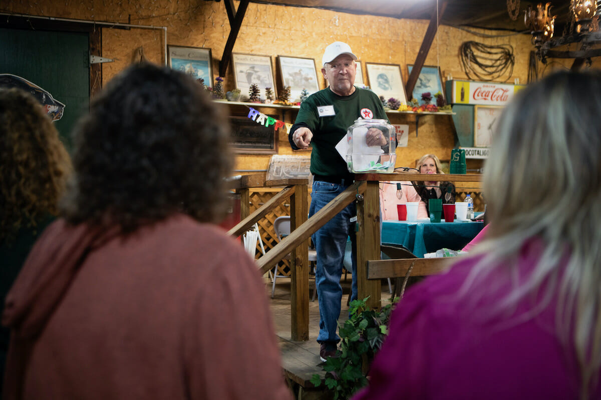 Harold ‘Red’ Peeples, Jr. asks trivia questions about the restaurant during Harold’s Country Club’s 50th anniversary celebration.