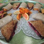 We were then given a choice between two soups: a chicken and dumpling and lentil. Both were exceptional and gave us just enough nutrients and satisfaction to yearn for more. Maura then served each of us a trio of salads: a cumin and lime black bean salad; a cauliflower couscous prepared with purple cabbage, carrots, dried cranberries and walnuts topped with turmeric dressing; and a chickpea salad accented with dried cranberries and walnuts with a dairy free vegenaise dressing. Each of us in this week’s Lunch Bunch had a favorite, so it’s safe to say that all of the salads were exceptional.