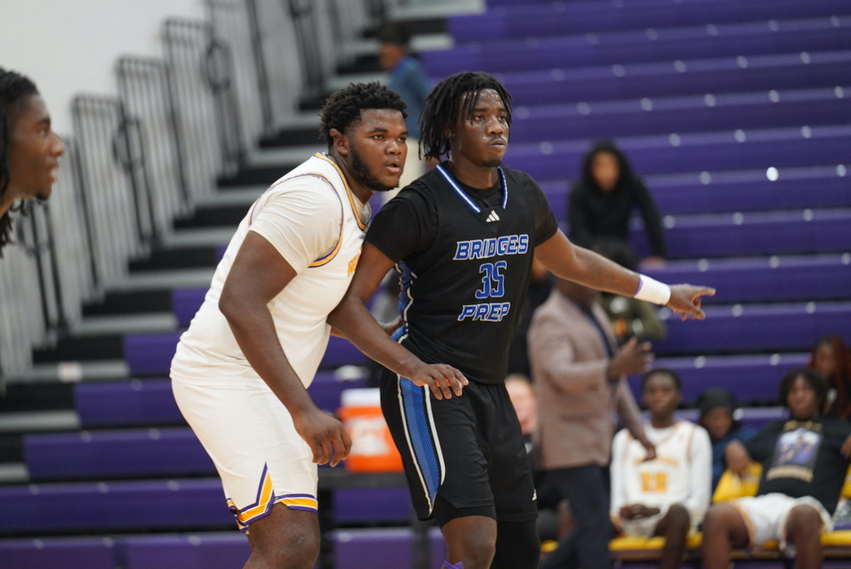 Bridges Prep’s Amarion Wilson blocks Whale Branch’s Isaiah Evanson Tuesday, Jan. 28, 2025, at Whale Branch Early College High School. Amber Hewitt/The Island News