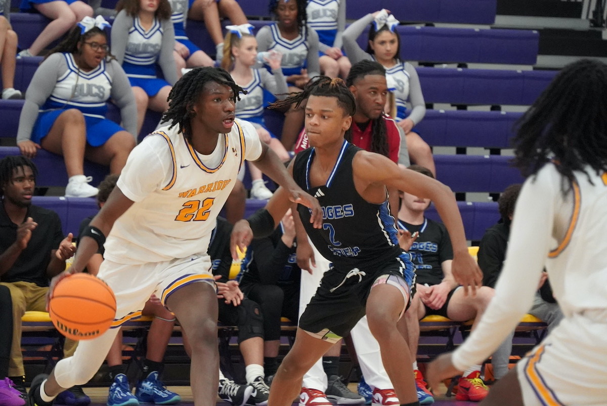 Whale Branch’s Kevin Jenkins dribbles the ball past Bridges Prep’s Ivan Grayon Tuesday, Jan. 28, 2025, at Whale Branch Early College High School. Amber Hewitt/The Island News