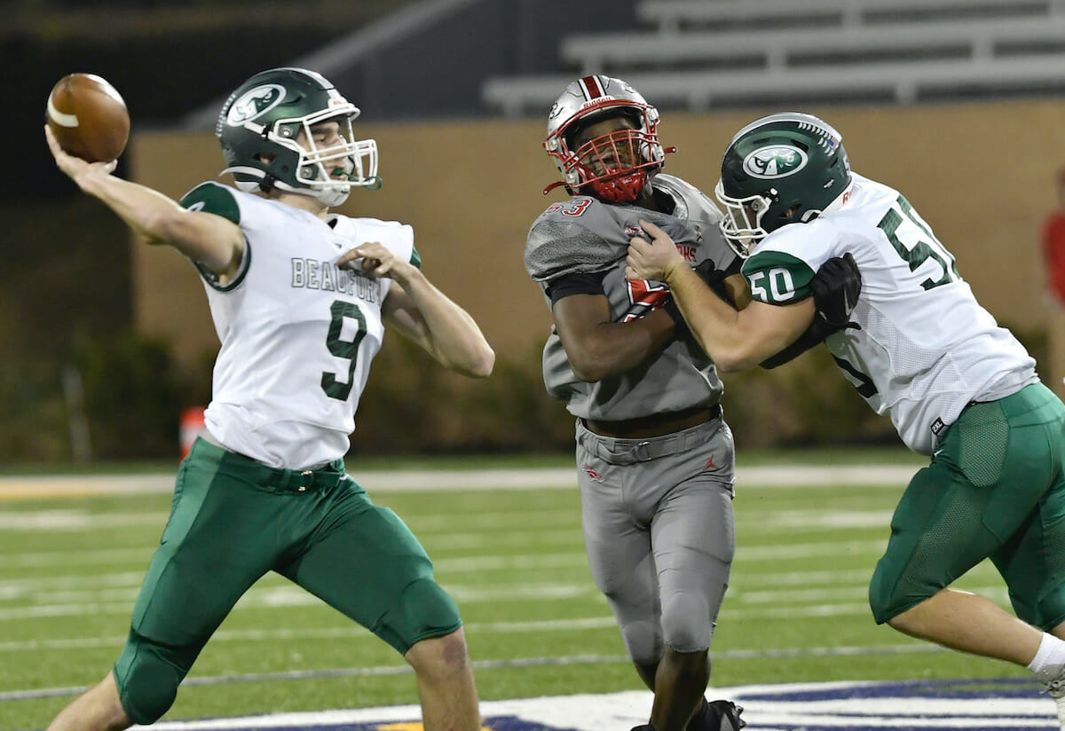 Beaufort’s defense needed a big play to spark a comeback effort, and Eamon Smalls got it started on the second snap from scrimmage. The 300-pound lineman punched the ball away from Lavaris Copley, and Colton Phares snatched the fumble to give the Eagle faithful some hope. But the door was promptly shut. Zyrin Odom was pummeled on a trick play for an 11-yard loss before a pair of incompletions stymied the Beaufort drive.