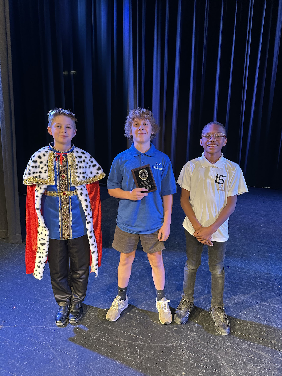 The Middle School team performed The Three Questions, based on a Tolstoy short story, in which a king (Steinhauser) searches far and wide for the meaning of life, only to discover the answer was under his nose the whole time. Dickinson played the role of the king’s chancellor.