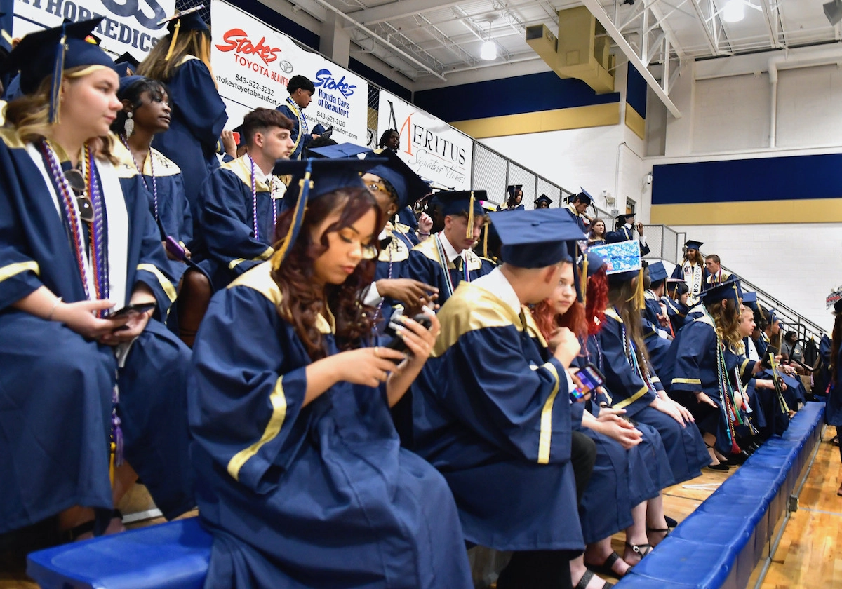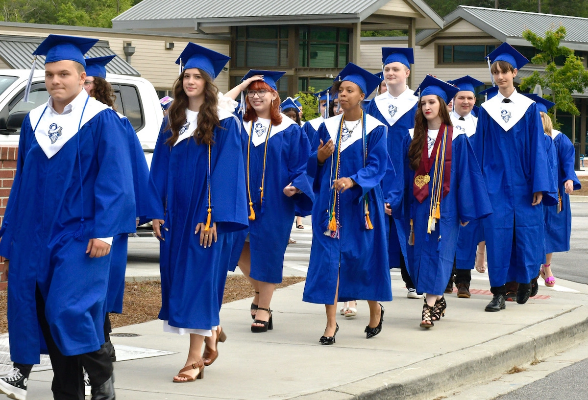 The Beaufort High School Air Force Jr. ROTC color guard posts the colors to begin the 2023 Commencement Exercises on Tuesday at the school’s football stadium. Beaufort High School graduated nearly 250 seniors. Bob Sofaly/The Island News