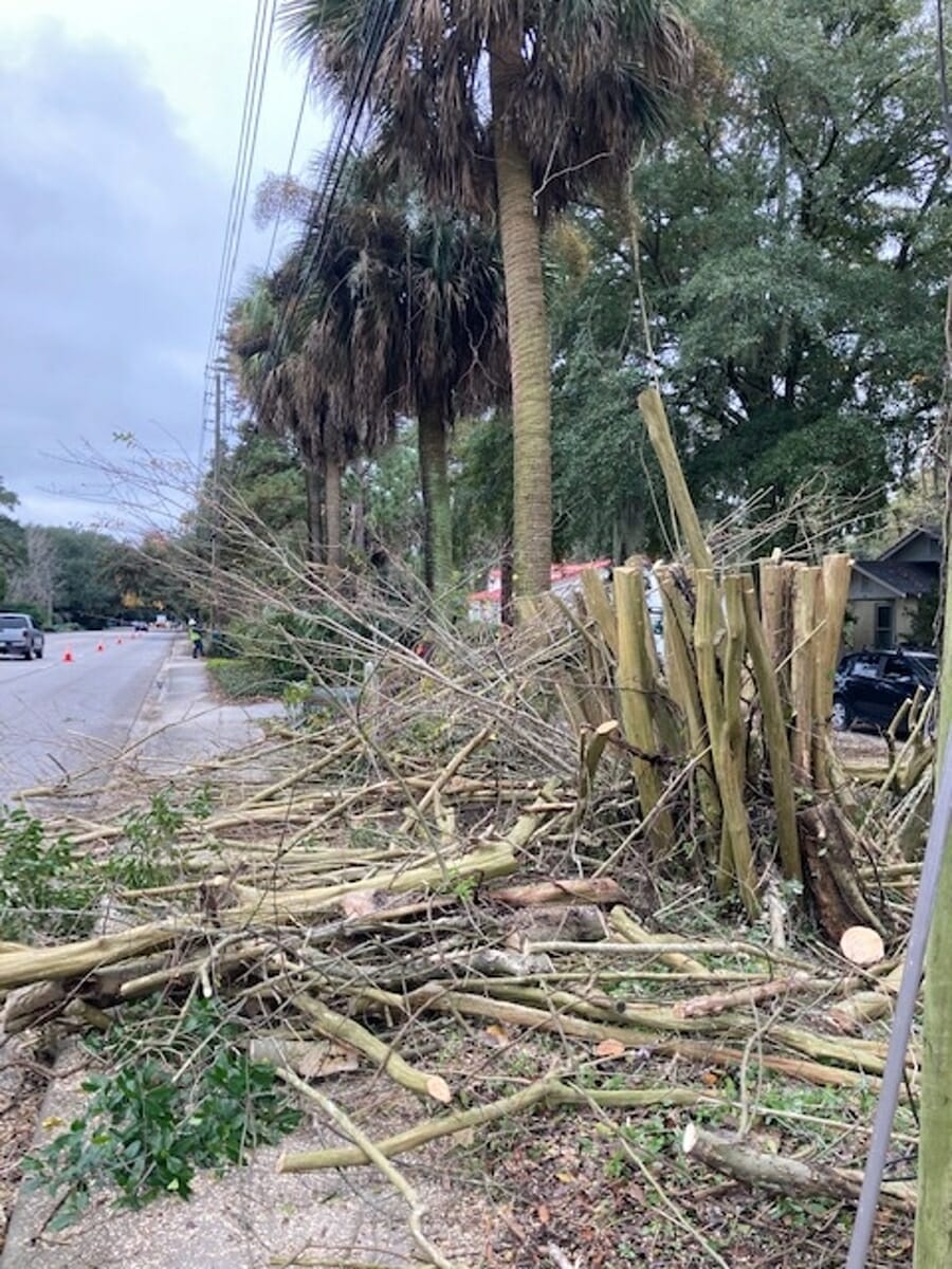 The right-of-way Palmetto trees being considered for removal, in many cases, were there before the power lines were installed. “Industry standards” used by the utilities contend the Palmetto fronds, if they touch live wires can cause fires or cause power outages. Trimming those fronds back from the lines isn’t enough, according to “industry standards.” Those trees are on the chopping block.