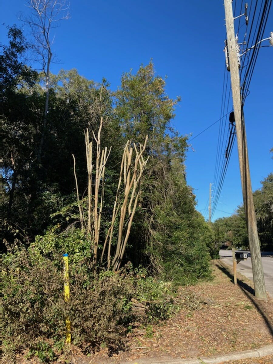 First photo: Crape Myrtles on Ribaut Road trimmed by workers from Dominion Energy last weekend.