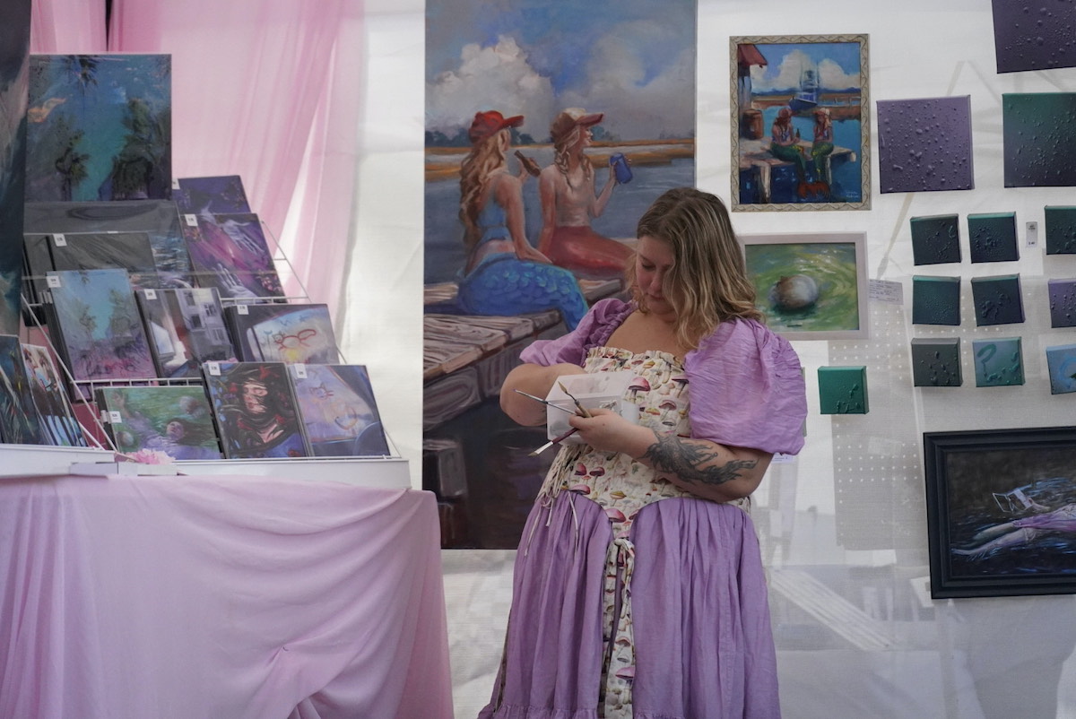 Local artist Tatiana Tatum prepares paintbrushes as she sets up her booth during the third annual Lowcountry Pride Festival held at Live Oaks Park in Port Royal on Sunday, Oct. 19, 2025. Amber Hewitt/The Island News