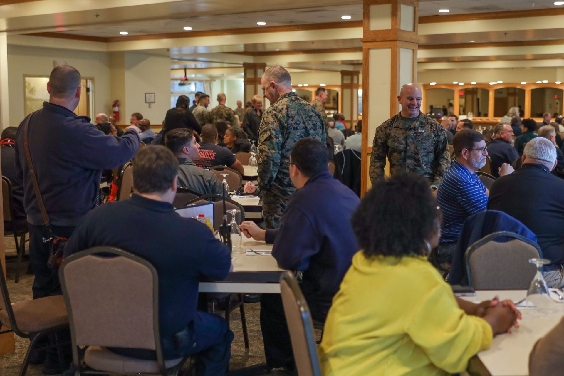 U.S. Marines, civilians and Sailors with MCAS Beaufort, enjoy breakfast during the quarterly civilian breakfast event Wednesday, Jan. 24 at MCAS Beaufort. The civilian breakfast was held by Marine Corps Community Services to recognize the work of Department of Defense employees working at MCAS Beaufort and Marine Corps Recruit Depot Parris Island. Lance Cpl. Nathan Saucier/USMC