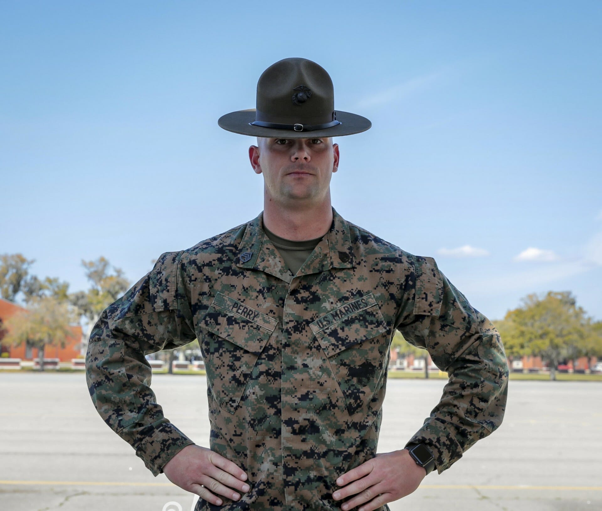 Staff Sgt. Richard Perry is the 1st Recruit Training Battalion drill master.