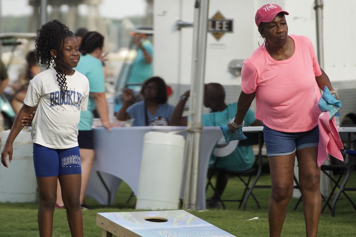 Tara Frazier, 9, and Logan Middleton, both from Charleston, play a game of cornhole during the second annual Music Festival of the Lowcountry on Saturday, June 7, 2025, at Henry C. Chambers Waterfront Park. Amber Hewitt/The Island News