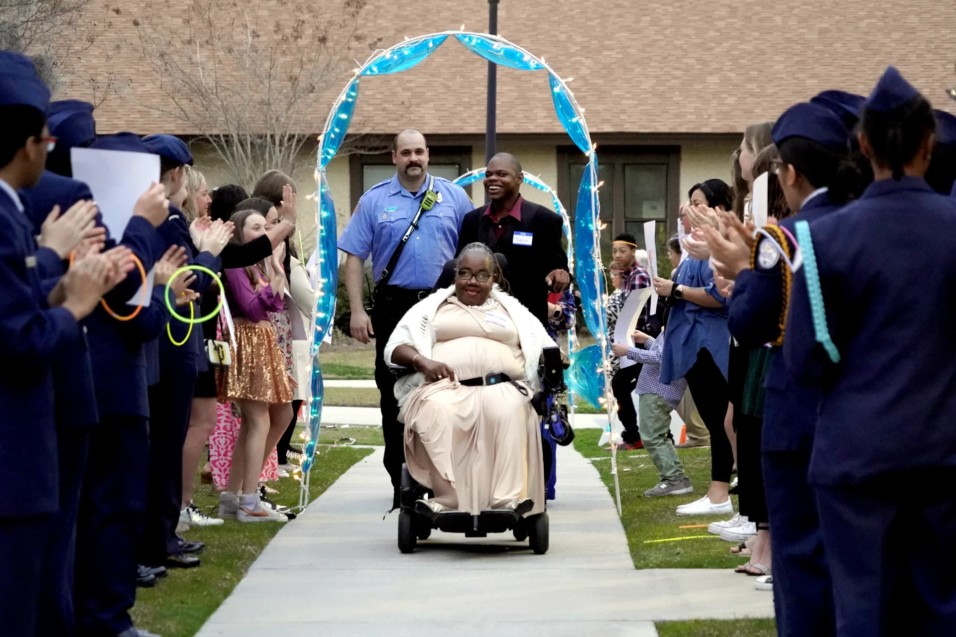 Butchie, one of the Honored Guests, and his Prom Buddy, show off their dance moves at the Night to Shine Prom for People with Special Needs sponsored by the Tim Tebow Foundation on Friday, Feb. 9, 2024 at Praise Assembly in Beaufort. The night was filled with dancing, laughter, and every guest being crowned a king and queen. Amber Hewitt/The Island News