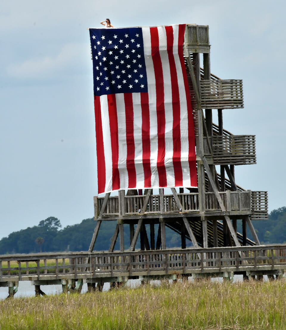 Above, a small boat flies the Stars and Stripes as it cruises through by the sea wall Saturday, July 3, near Henry C. Chambers Waterfront Park.