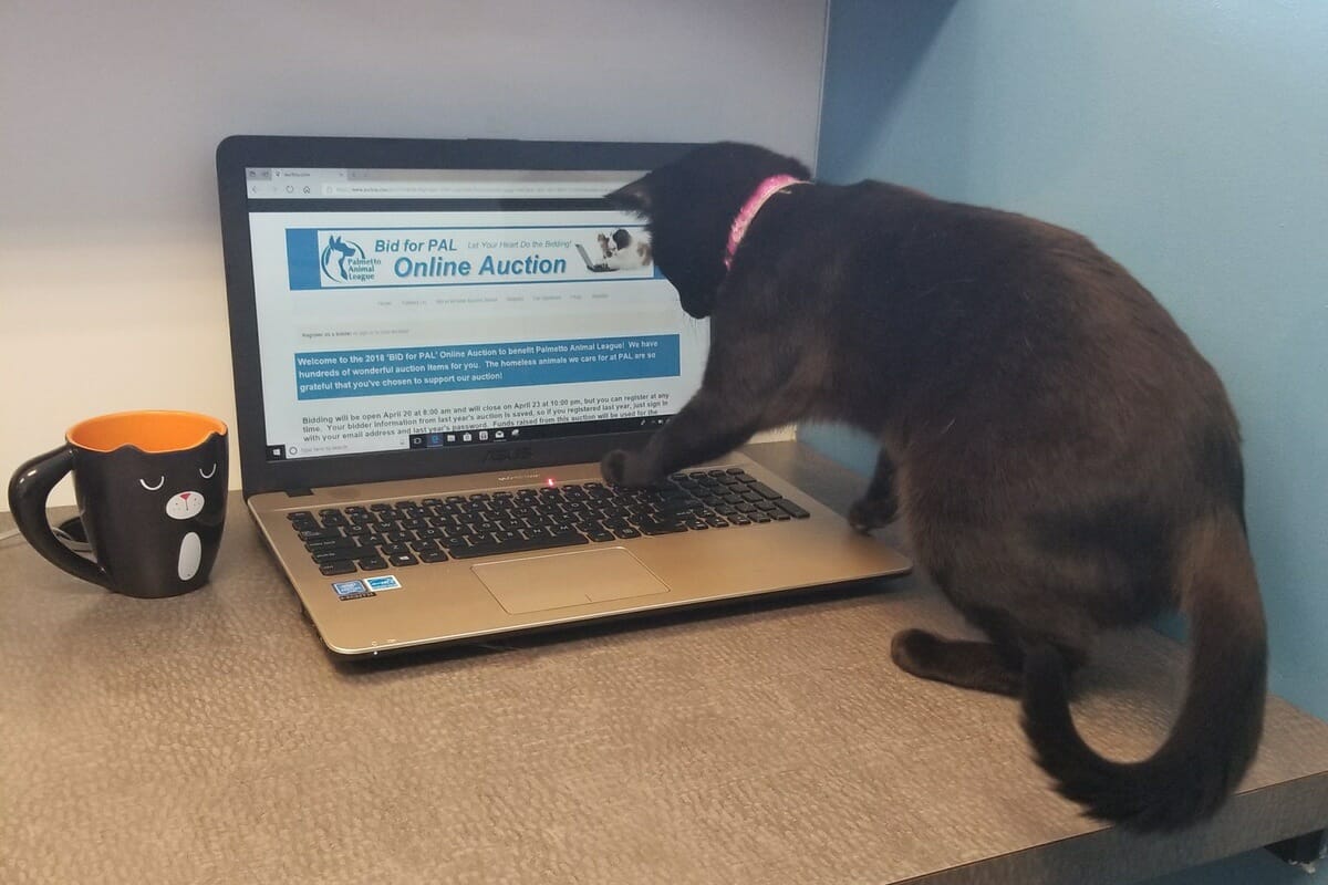 Palmetto Animal League resident Star has started browsing the hundreds of items featured in next week’s “Bid for PAL” online auction.