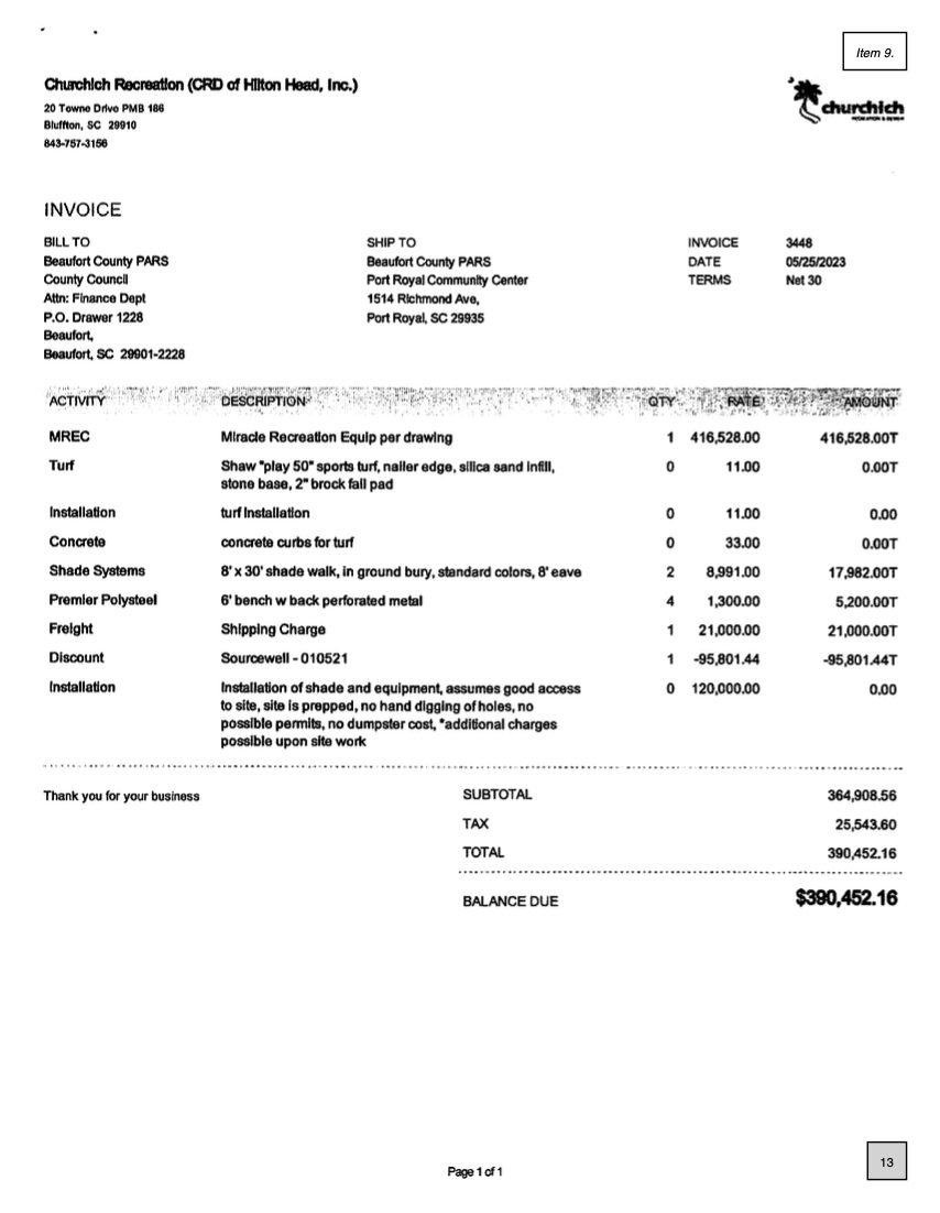 Per his statement and invoices submitted to council, the playground cost a total of $799,052, and according to Atkinson, to date this invoice has not been paid by Beaufort County.