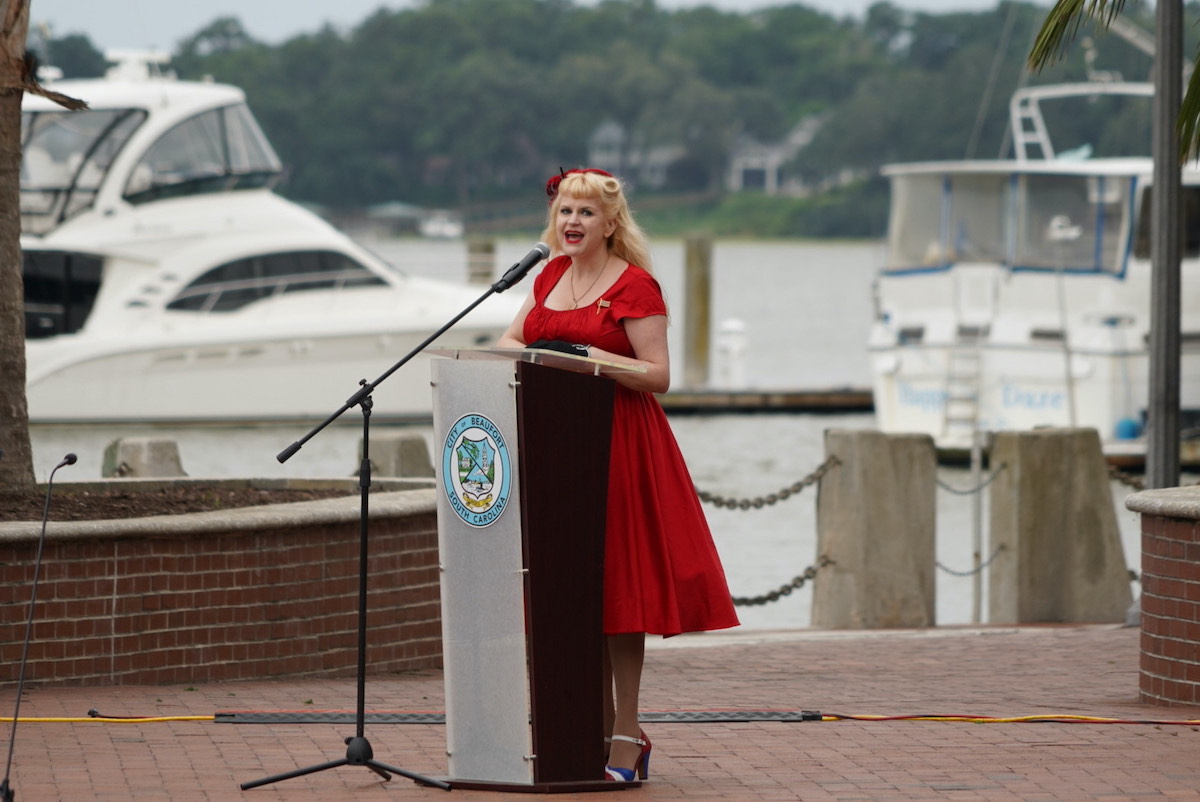 Beaufort’s Alison Chalmer sings the national anthem during the Patriot Day event to remember and honor all who served and died on 9/11. The event, sponsored by the City of Beaufort and The Exchange Club of Beaufort, was held on Wednesday, Sept. 11, 2024 at Henry Chambers Waterfront Park. Amber Hewitt/The Island News
