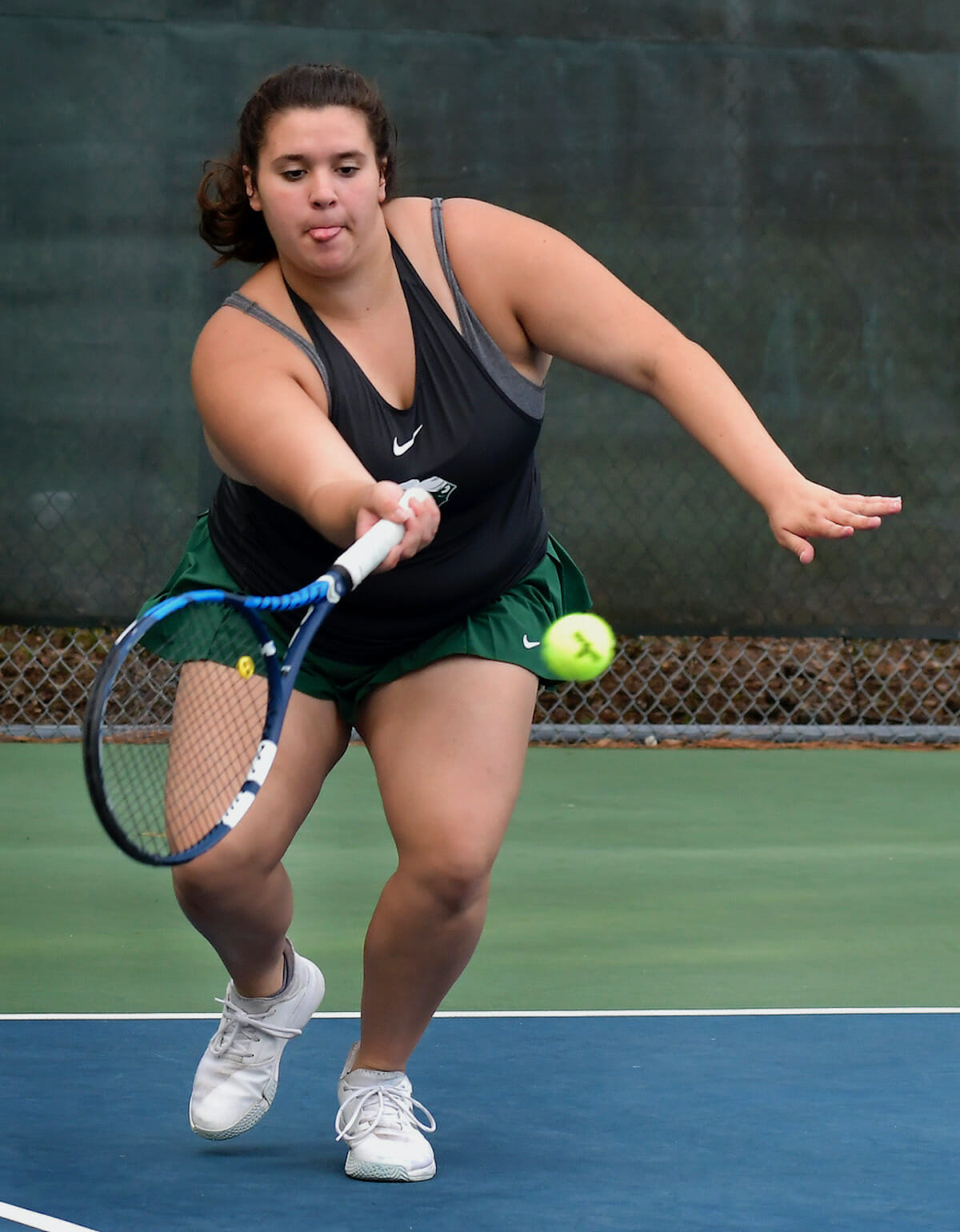 Natalie Turbeville set the tone for the Eagles with a 6-1, 6-1 win at No. 1 singles, and Julia Pollitzer and Laila Cunningham followed suit with straight sets wins at No.3 and No. 5. Beaufort’s Kathryn Fries lost a thrilling three-set match at No. 4, falling 4-6, 6-4, 10-7.