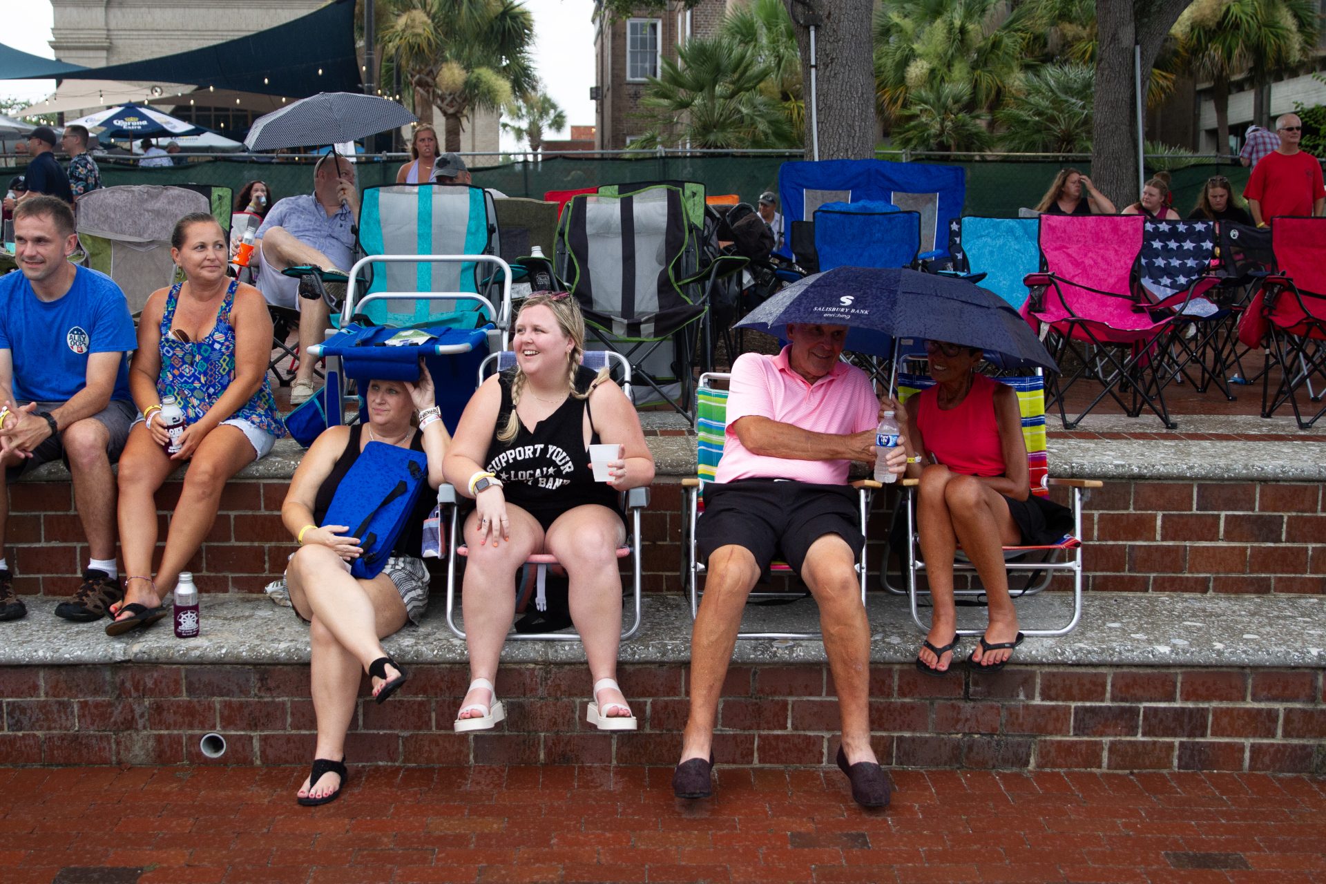 Festival goers wait for the music to begin following the rainstorm that caused a one hour rain delay before the 67th Annual Water Festival’s Concert in the Park on Saturday, July 15, 2023, at Henry C. Chambers Waterfront Park in Beaufort. Delayna Earley/The Island News