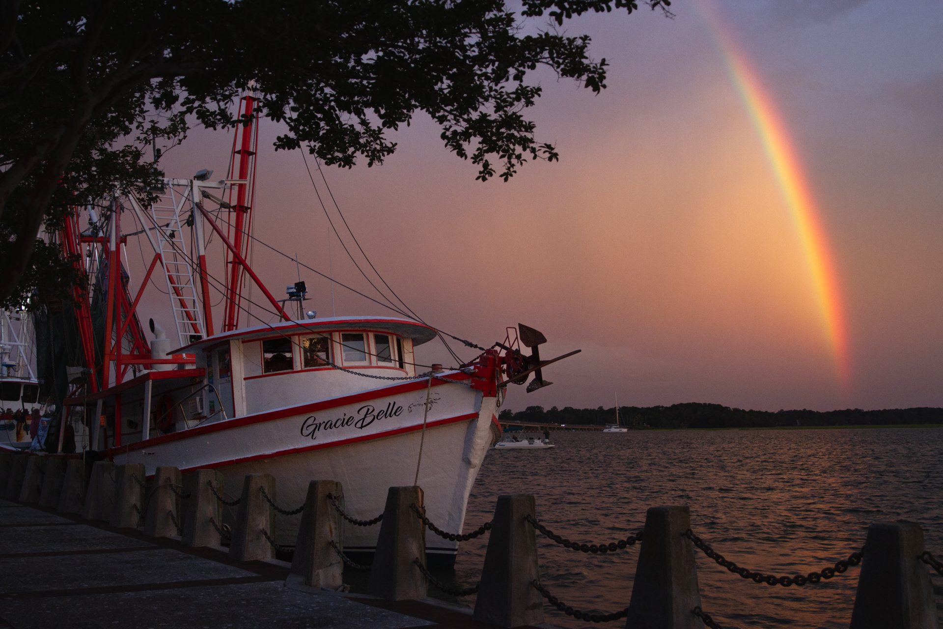 Due to inclement weather, the concert start time was pushed back to just after 8 p.m., but as the music started, the concert goers began to dry off and were treated to a beautiful rainbow and sunset over the Beaufort River.