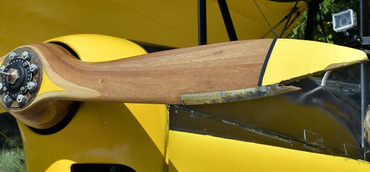 A foot-long piece of the outer edge of the 72-inch laminated prop splintered off; “it started to really vibrate” he said.
