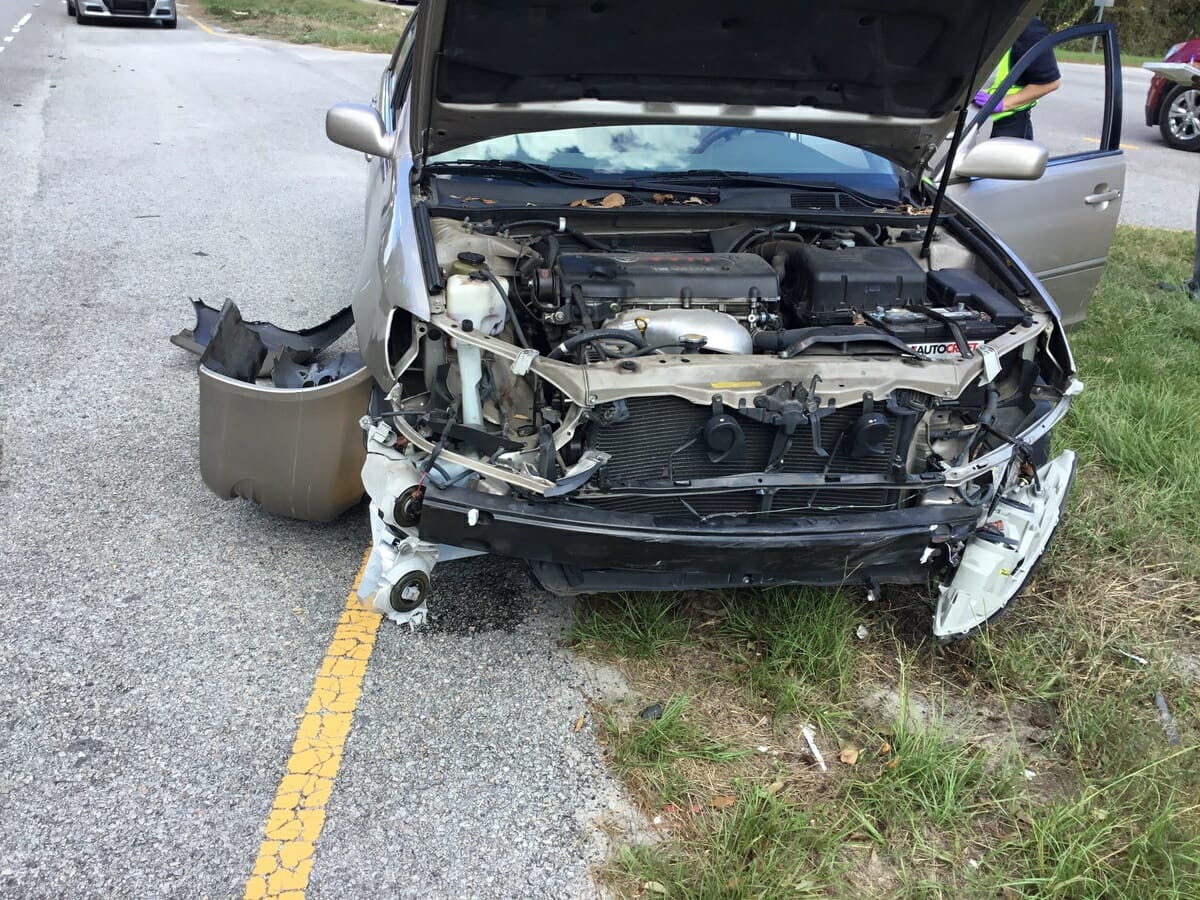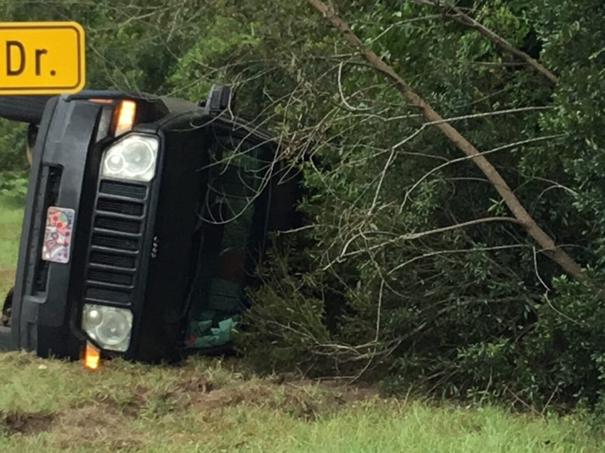 Firefighters arrived to find a Jeep SUV lying on its side in the tree line, and a damaged Toyota Camry. All occupants were out of their vehicles when firefighters arrived. All of the occupants were wearing seatbelts and no injuries were reported. One north bound lane and one south bound lane of Trask Parkway were blocked for about 30 minutes while emergency crews assisted the injured and removed roadway hazards.